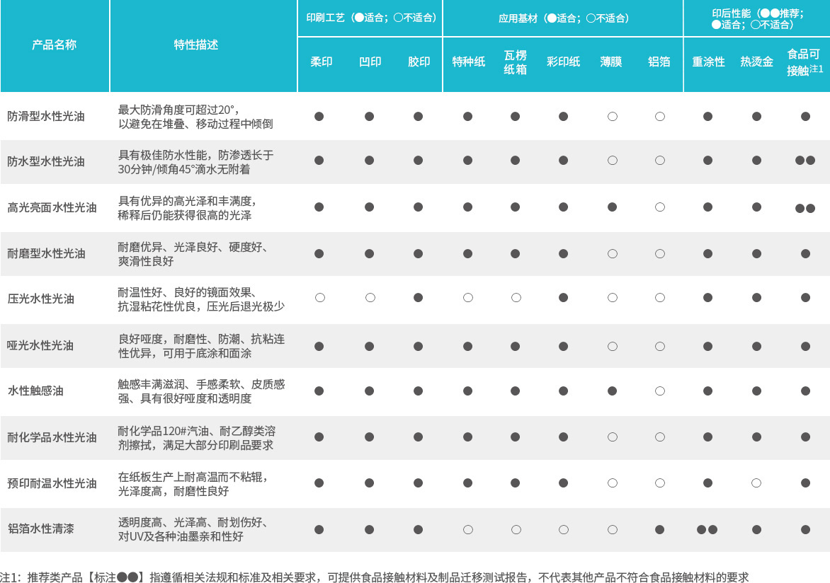 佳景科技拥有专门的水性光油部门,所研发和生产的产品可分为高光泽、普通光泽、哑光光泽三大类型,适用于不同印刷机器与印刷工艺,为客户提供全方位、多功能、高性能的印刷上光解决方案。
